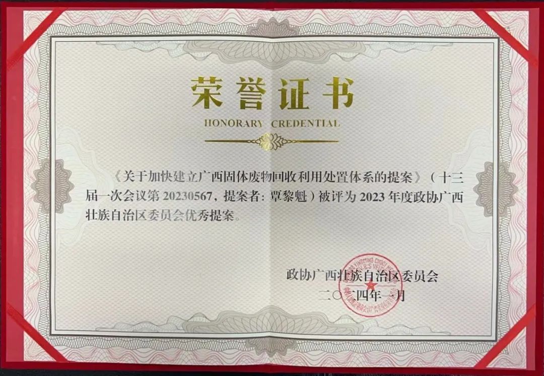 覃黎魁委员提案获评2023年度自治区政协优秀提案 助推再生资源循环产业...